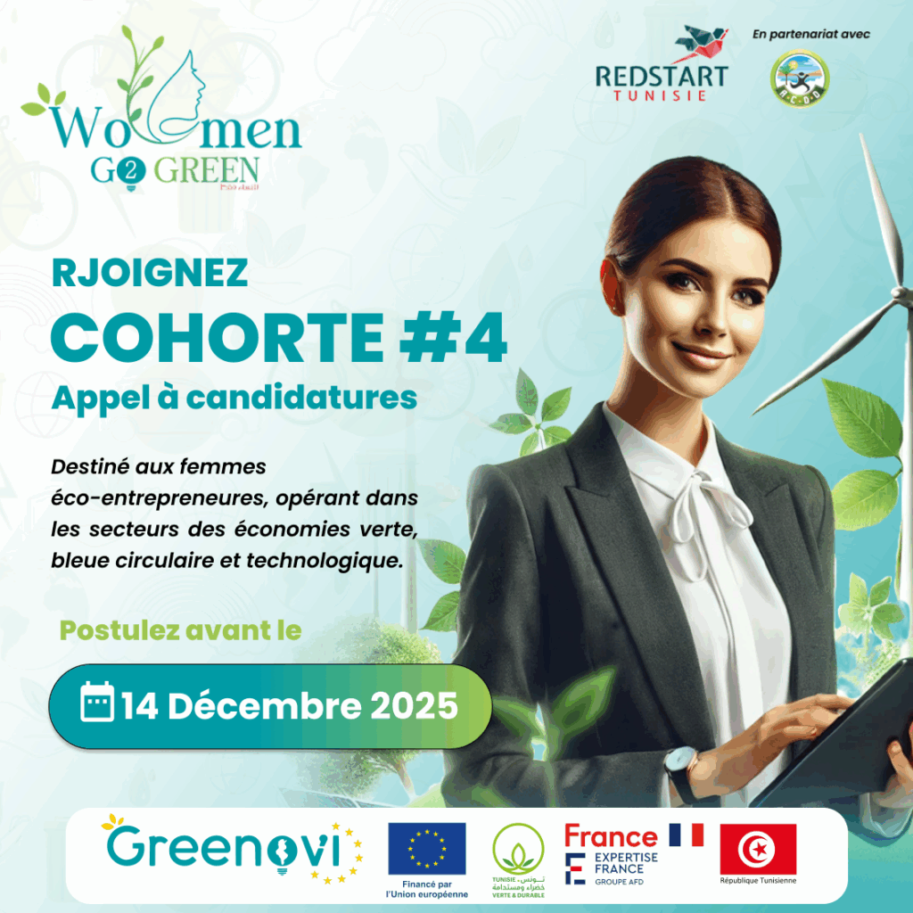 Rejoignez la *Cohorte 4* du programme WOMEN GO GREEN #2, qui a pour objectif de soutenir les femmes entrepreneures dans leur accès aux financements, aux marchés, et de les accompagner dans le développement de solutions innovantes pour répondre aux enjeux écologiques et économiques de la Tunisie, en particulier dans les régions intérieures.